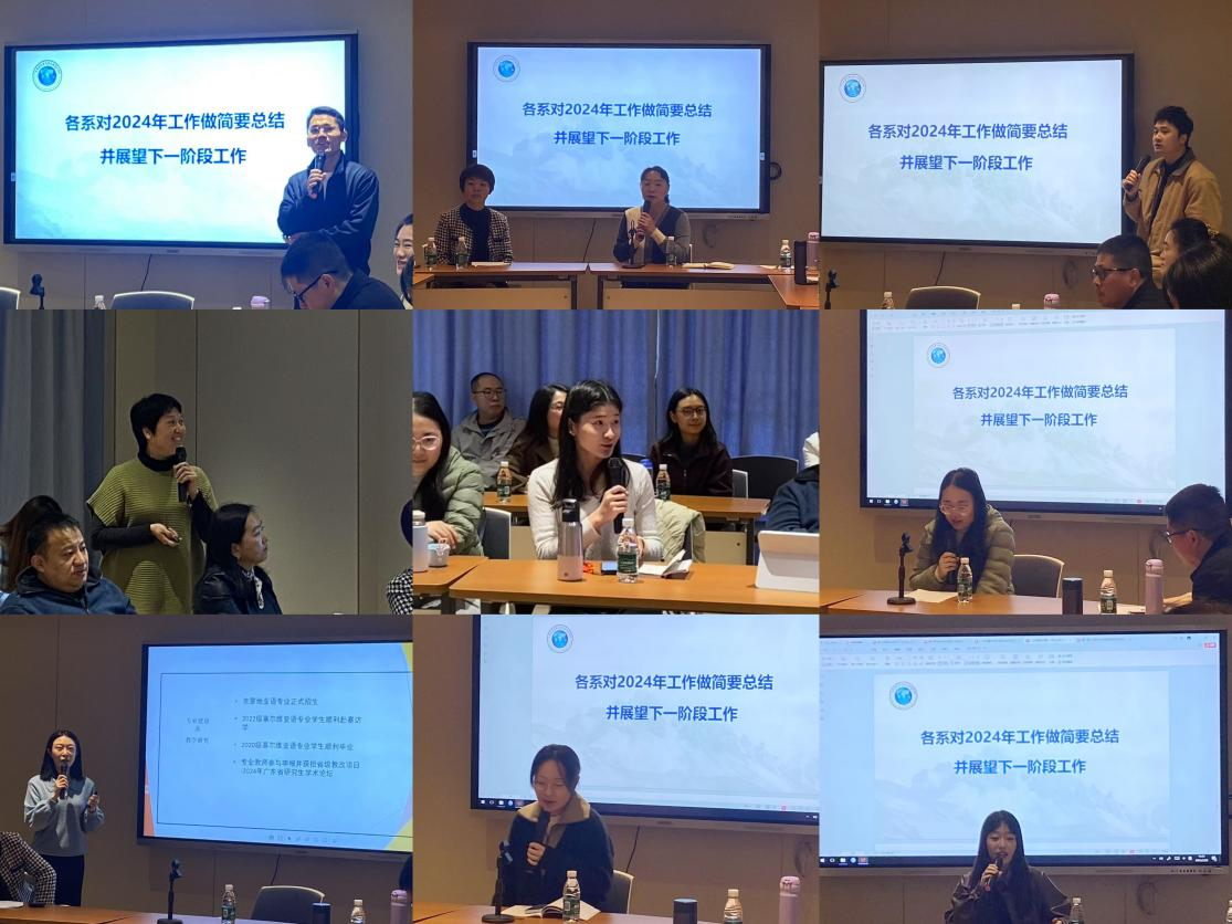 随后,系主任、教师代表分别就2024年工作进行总结,并对2025年工作进行展望。外交系主任周龙、国际政治系主任范洪颖、国际组织与全球治理系主任王惟晋、意大利语系主任张海虹、波兰语系教师梁小聪、希腊语系主任尚冰、塞尔维亚语(克罗地亚语)系主任徐恒祎、捷克语系主任蔡洪召、匈牙利语系教师王梦圆等分别从教学工作、科研成果、国际交流、实践活动、队伍建设等方面介绍了各系的发展现状,并对未来人才培养创新、科研社会服务和学科融合发展路径提出了新设想、新方向。