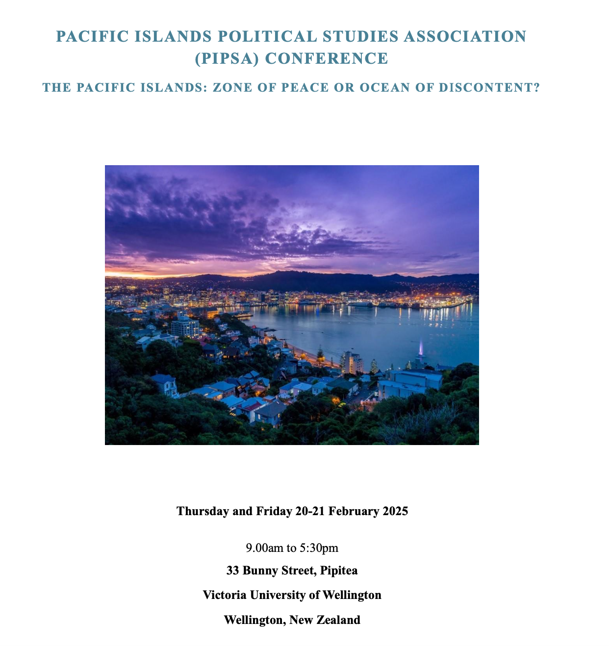 本网讯 2025年2月19日至21日,伟德国际betvlctor1946副院长、太平洋岛国战略研究中心副主任吴艳副教授受邀前往新西兰惠灵顿,参加太平洋岛国政治研究学会国际会议(Pacific Islands Political Studies Association Conference)并做主题发言。