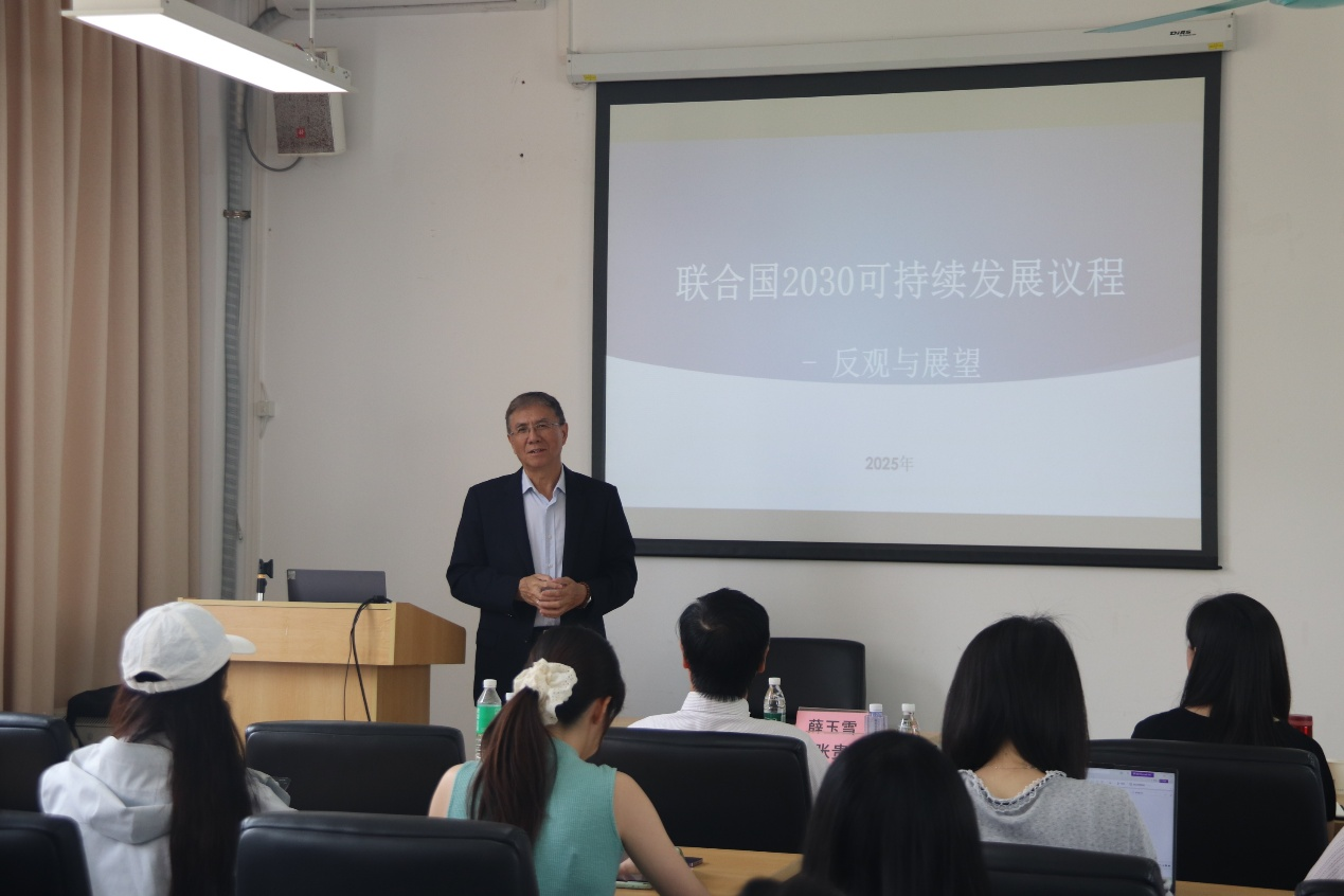 薛玉雪重点阐述了可持续发展目标(SDGs)。他强调,联合国可持续发展目标具有以下特点:综合性强、适用于所有国家、体现公平与可持续原则、目标设定具备量化和时限性、多样化的实现路径、强调议题间的内在关联,以及对全球伙伴关系的高度重视。