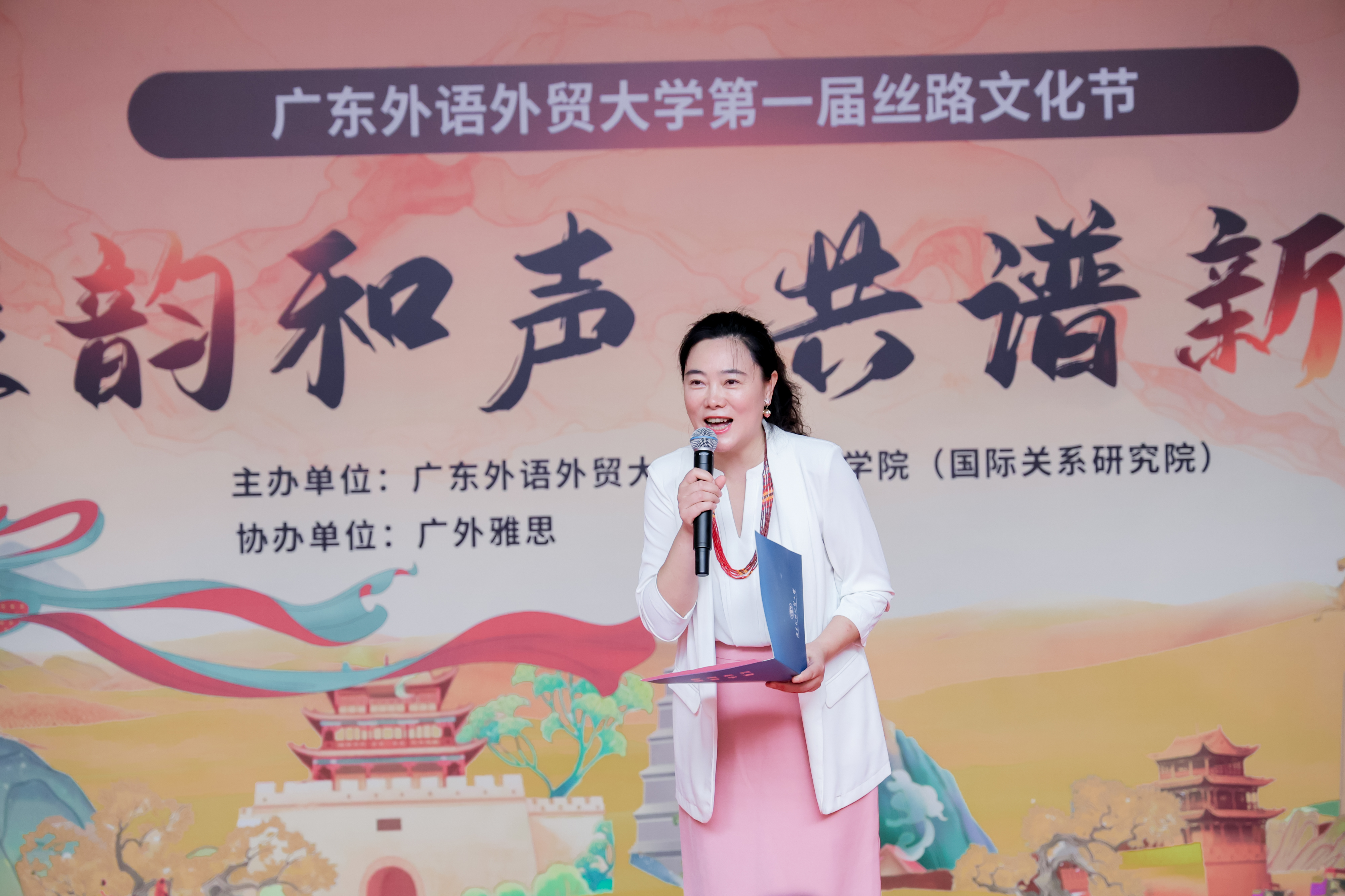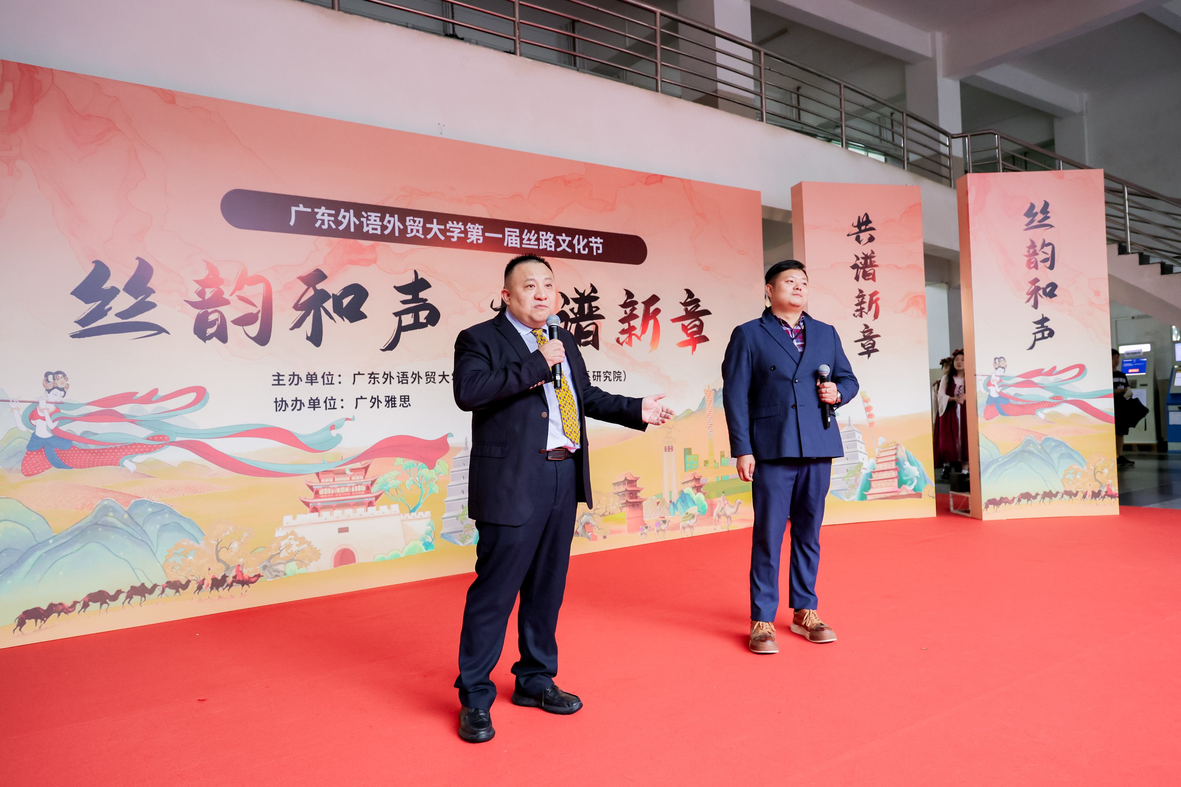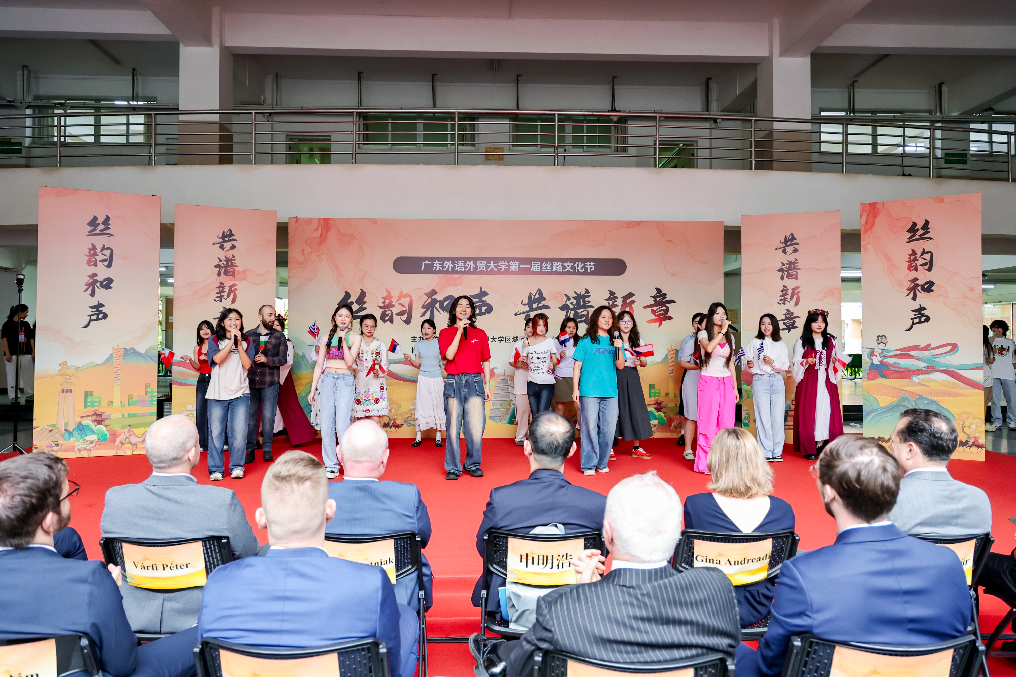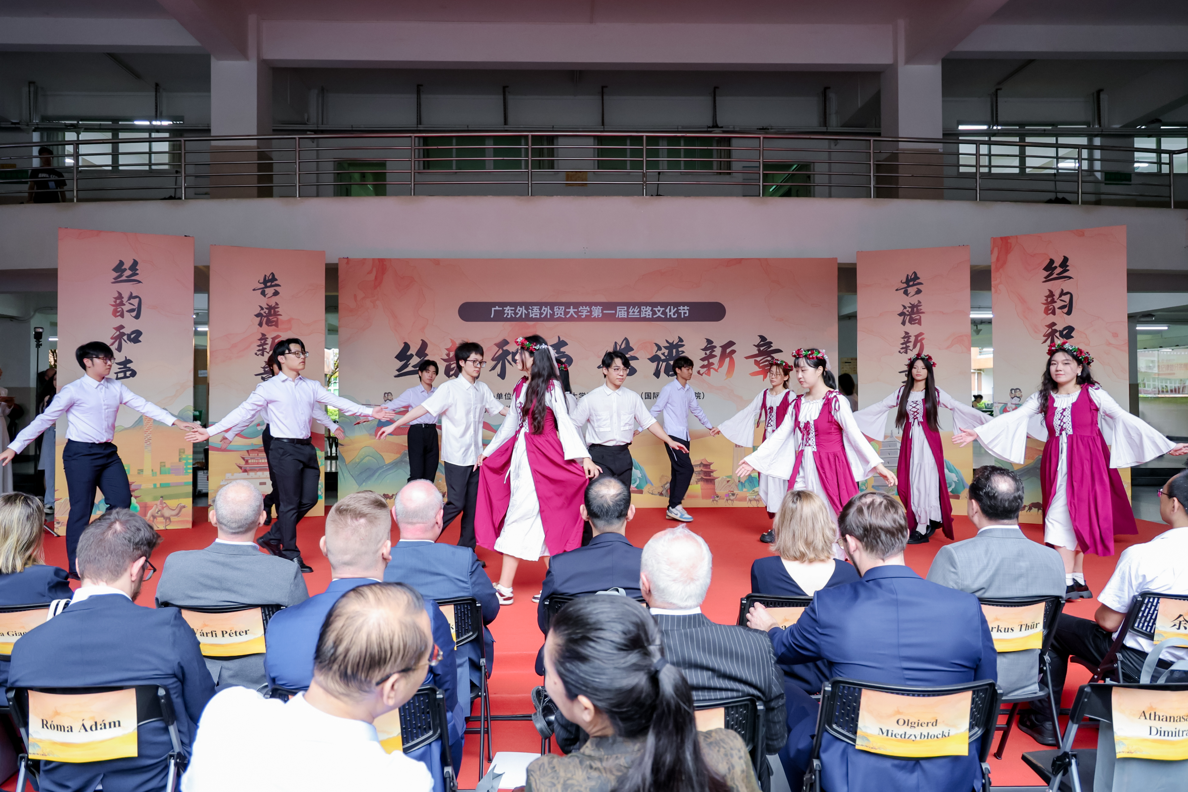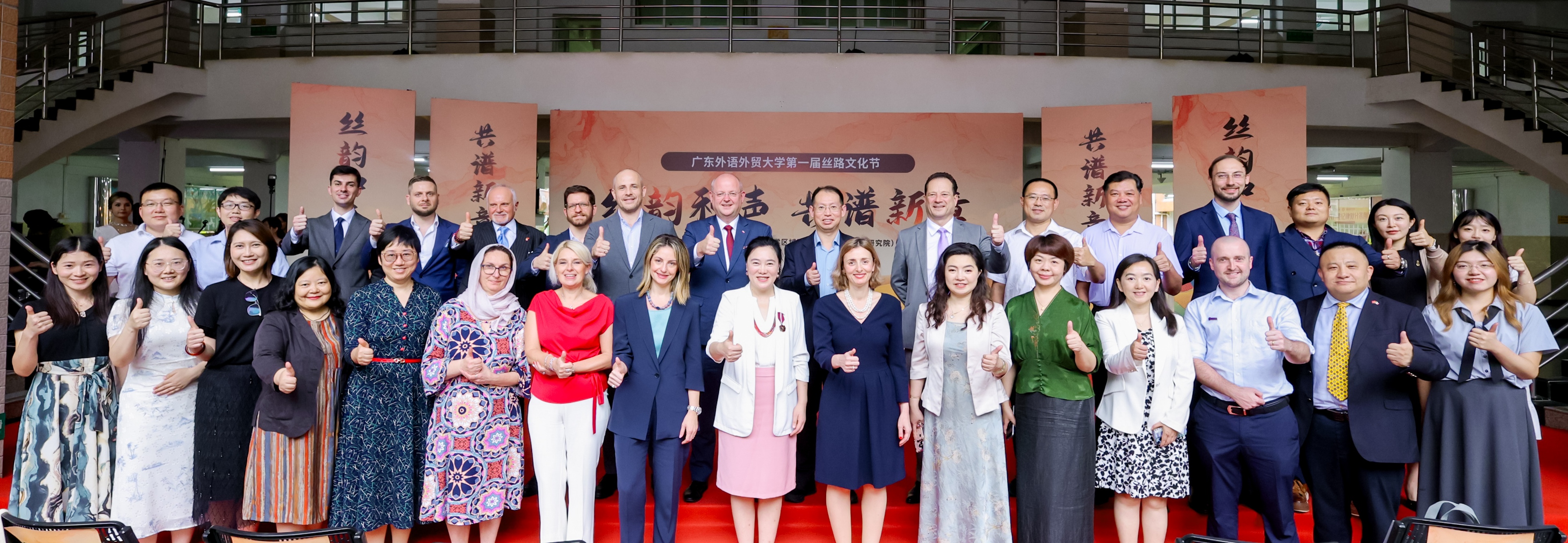 本网讯 5月29日下午,我校第一届丝路文化节在白云山校区开幕。本届文化节由伟德国际betvlctor1946,伟德bv1946官方网站主办,以“丝韵和声,共谱新章”为主题,演绎“一带一路”最生动的当代叙事。意大利、波兰、希腊、匈牙利、瑞士等5国驻穗总领事及代表,中国意大利商会,紫金矿业集团,宣传部、保卫部、学生工作部、校团委、教务部、国际交流合作部、总务后勤部、英文学院、商英学院、亚非学院、东南亚学院、区域国别学院(国际关系研究院)、翻译学院、国际学院、留学生教育学院、图书馆、校友事务与合作发展处等相关单位负责人,校友、师生200余人齐聚一堂,共同见证这场文化盛会。此次活动也得到了广外雅思、广东拓臣科技发展有限公司、广州国翔报关有限公司、韶关现代日语学校、广州市想象文化传媒有限公司等单位和校友企业的大力支持。
