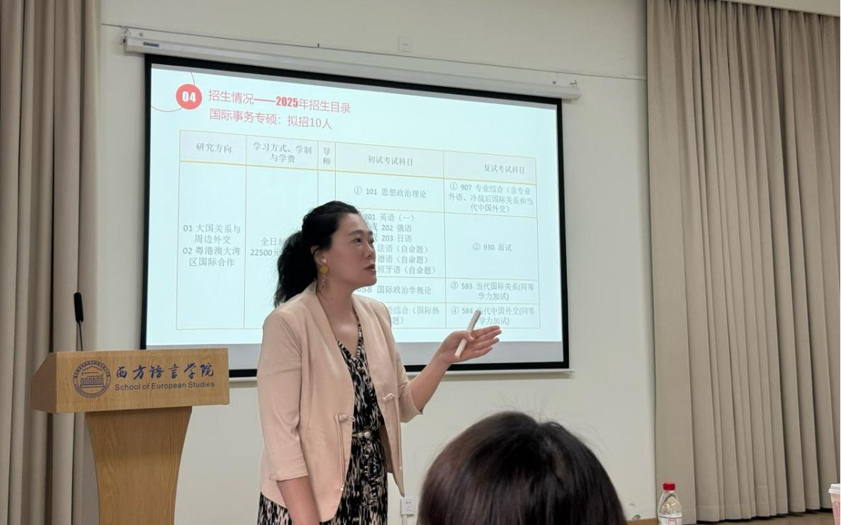 5月25日,院长茅银辉教授、匈牙利语专业教师陈越安前往越秀外国语学院西语学院开展硕士研究生招生宣讲,与学子们展开了面对面的交流。宣讲会上,陈越安介绍了伟德国际betvlctor1946硕士点基本情况。她指出,在研究生培养方面,学院始终坚持高标准、严要求,注重理论与实践相结合,通过丰富的实践活动、国际交流项目等,培养学生的创新精神和实践能力,让学生在学习中成长,在实践中蜕变。茅银辉结合学生实际情况,重点推荐了欧洲语言文学硕士点和国际事务专业硕士点。她表示,欧洲语言文学依托学院强大的语言教学和研究资源,注重培养学生的语言运用能力和文学素养。国际事务专业则聚焦于国际政治、经济、文化等领域的热点问题,旨在培养具有国际视野的高素质专业人才。