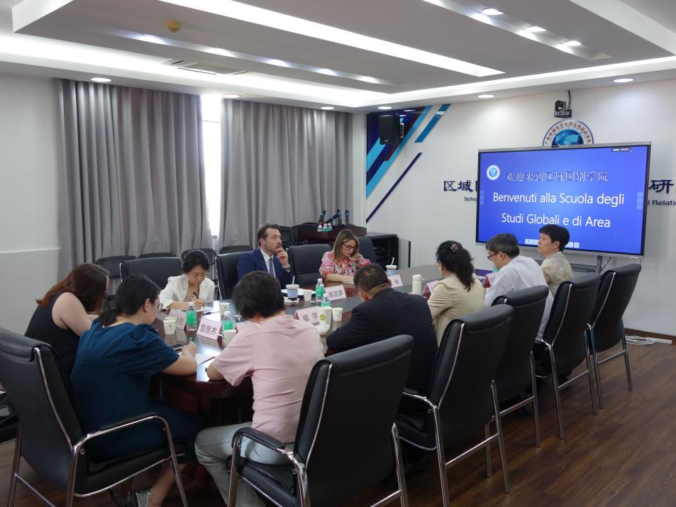 本网讯 6月10日下午,意大利驻广州总领事馆代表一行来访伟德国际betvlctor1946,伟德国际betvlctor1946院长茅银辉、副院长臧宇及意大利语系全体教师出席会议。双方围绕意大利语系学科建设、外语专业转型、区域国别学学科建设等议题进行了深入交流。