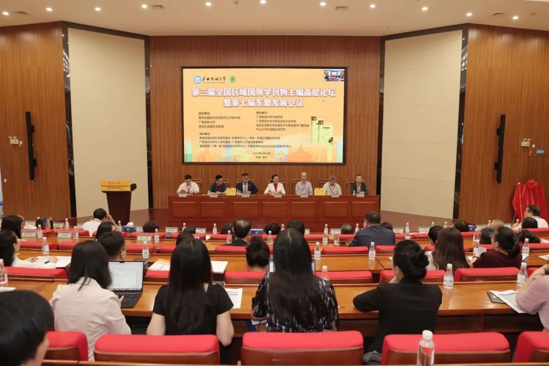 本网讯 6月28日,第三届全国区域国别学刊物主编高层论坛暨第七届东盟发展会议在广西民族大学思源湖校区图书馆报告厅举行。广西民族大学校长韦仕珍,教育部国别和区域研究工作秘书处主任、高校区域国别学联盟学术委员会主席罗林出席会议并致辞。高校区域国别学联盟秘书长、中山大学区域国别研究院院长陈杰,天津商业大学副校长余江,上海社会科学院《史林》主编、历史研究所所长郭长刚,上海社会科学院《国际关系研究》主编、国际问题研究所所长王健,《南洋问题研究》主编、厦门大学国际关系学院/南洋问题研究院教授、广西民族大学“八桂学者”庄国土以及国内高等院校和科研机构专家学者参加会议。广西民族大学副校长高兴宇主持开幕式。我校云山青年学者、《区域国别研究》集刊执行主编殷立飞、《战略决策研究》编辑曹金芳、《中东欧研究》集刊编辑顾虹飞参加会议。