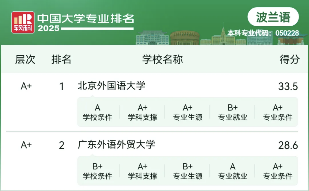 本网讯 6月18日,高等教育专业评价机构软科正式发布“2025软科中国大学专业排名”,伟德国际betvlctor19466个专业名列前茅,其中,波兰语专业获得最高等级A+,排名全国第二;塞尔维亚语专业获得等级A+,排名全国第二。学院在欧洲非通用语教学领域具有深厚积淀与鲜明特色,是华南地区欧洲非通用语人才培养的核心基地。