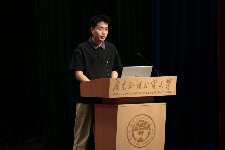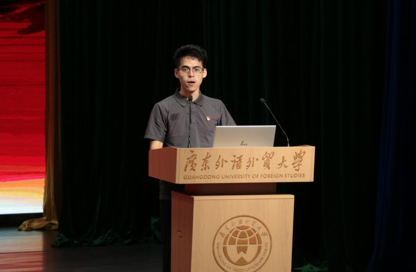 研究生老生代表2023级国际关系专业刘腾龙结合在基层实践里读懂“中国故事”、在跨文化交流中找到“中国声音”的个人经历,鼓励同学们要扎稳祖国大地的“根”,也能张开国际视野的“翼”,以广外人的身份,成为连接世界的桥梁和支撑祖国的栋梁。