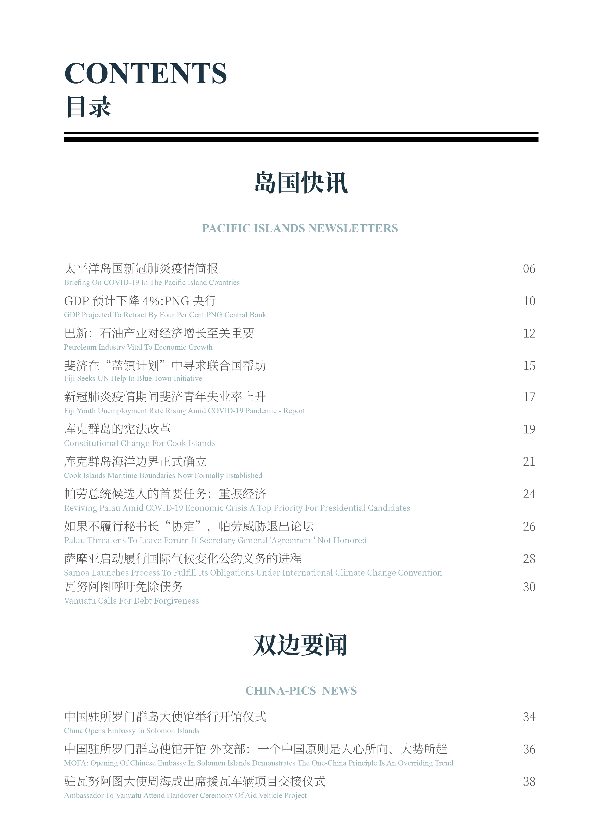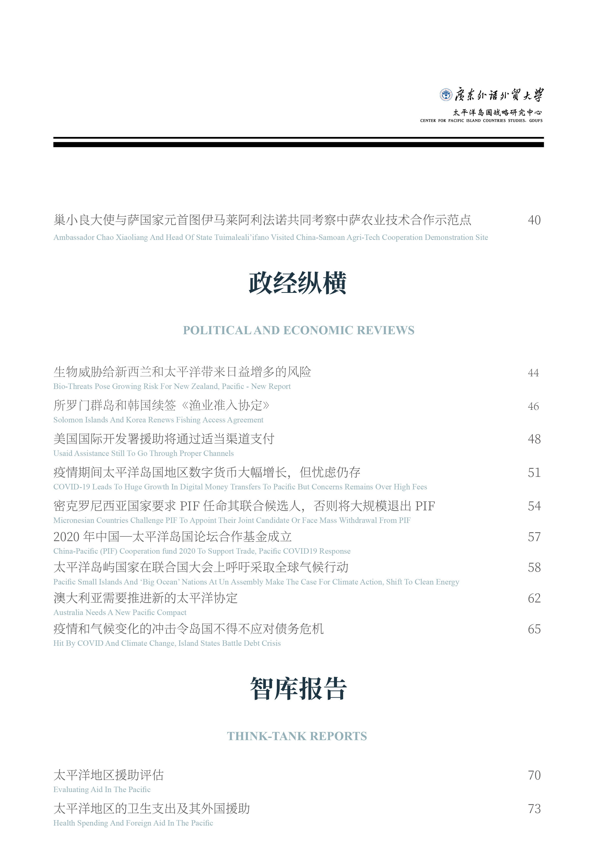 《伟德国际betvlctor1946》是由广东外语外贸大学太平洋岛国战略研究中心编译的学术通讯,旨在为国内外专家、学者,政府部门、研究机构提供太平洋岛国资讯,主要分为岛国快讯、双边要闻、政经纵横、智库报告四个板块。刊物将以双月刊形式进行线上发布。本期内容继续聚焦太平洋岛国新冠肺炎疫情现状及影响,请您阅览。