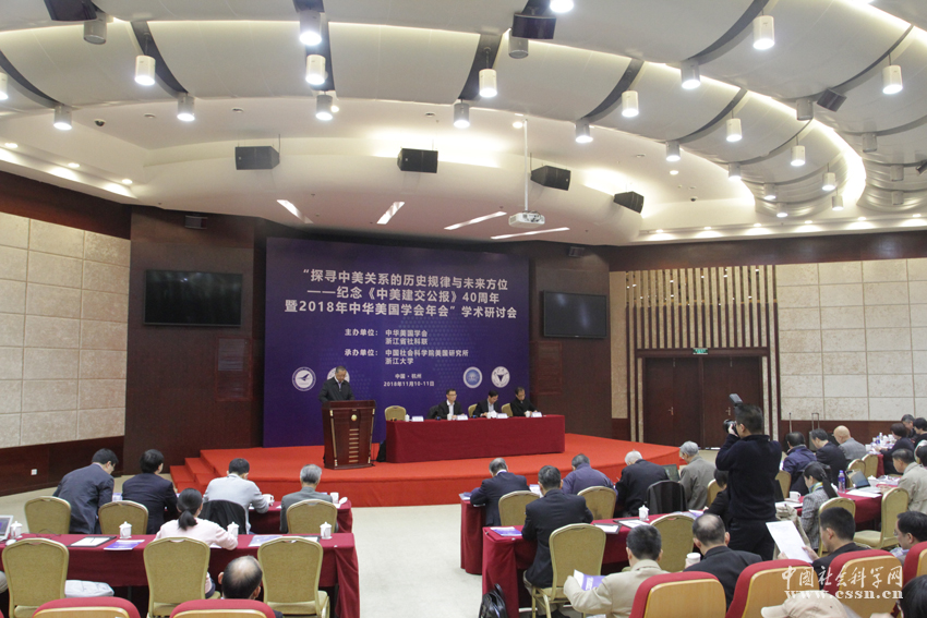 本网讯:由中华美国学会,浙江省社科联主办,中国社会科学院美国研究所,浙江大学承办的2018年中华美国学会年会”11月10-11日在杭州 浙江大学(紫金港校区)举行。中国社会科学院、中国国际问题研究院、清华大学、中国人民大学、国际关系学院、外交学院、浙江大学、南京大学等高校和科研院所120多位专家学者参加了本次年会。