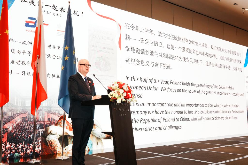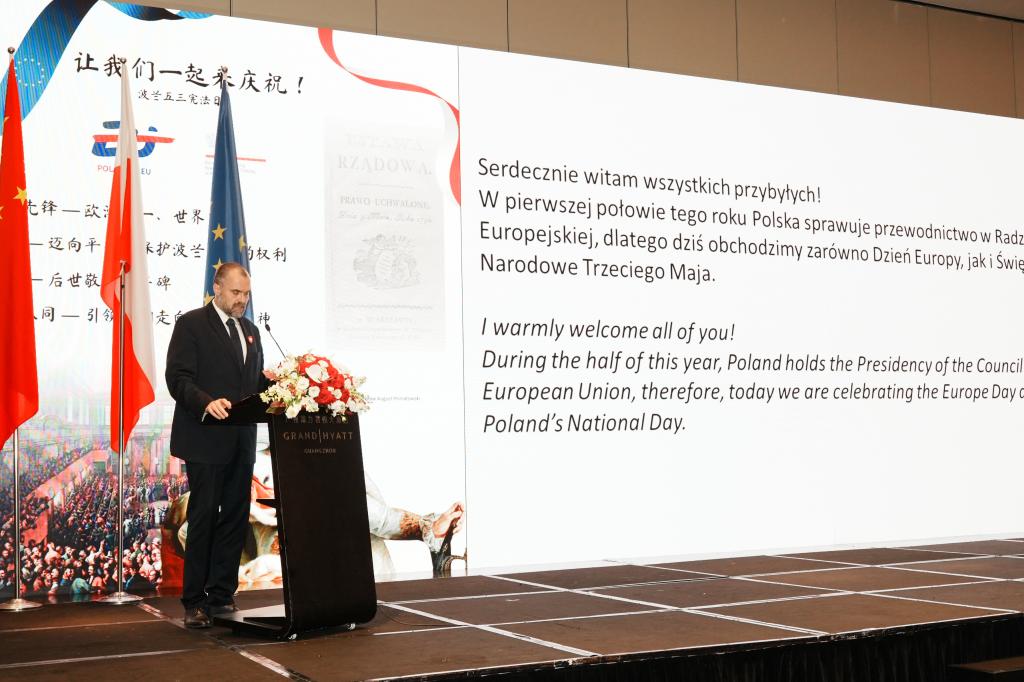 波兰共和国驻华大使古天卫首先介绍了波兰国庆节的由来,讲述了中波友好的历史。他说,在纪念第二次世界大战胜利八十周年之际,希望日后永远不会有战争未来波兰将致力于坚持拉近欧盟与中国的世界合作伙伴关系,开展宝贵的交流合作。古天卫在开场致辞中,全程使用中文进行演讲,还诚挚赞扬了波兰语系学子的精彩表演