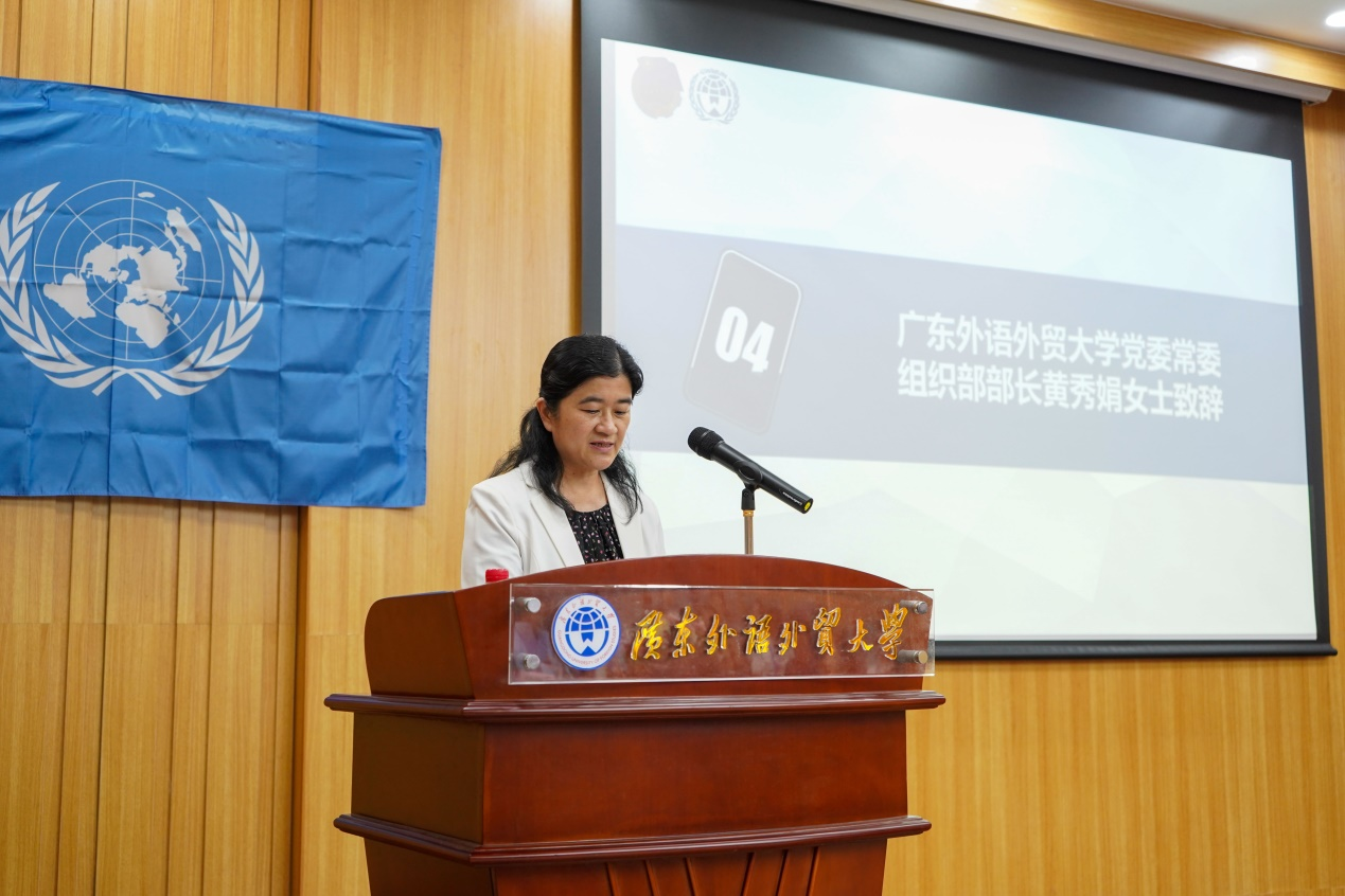 黄秀娟在开幕式上强调,我校模拟联合国协会持续开展的模联活动,深度契合学校国际化人才培养定位。她高度评价协会在全国高级别模联大会中屡获殊荣,并指出其学术影响力已从校园辐射至华南地区乃至全国高校圈层。黄秀娟寄语全体代表以学术探讨深化专业认知,以思想碰撞启迪人生智慧,以团队协作广结青年才俊,期待本届大会成为展现新时代大学生国际视野与责任担当的优质平台。
