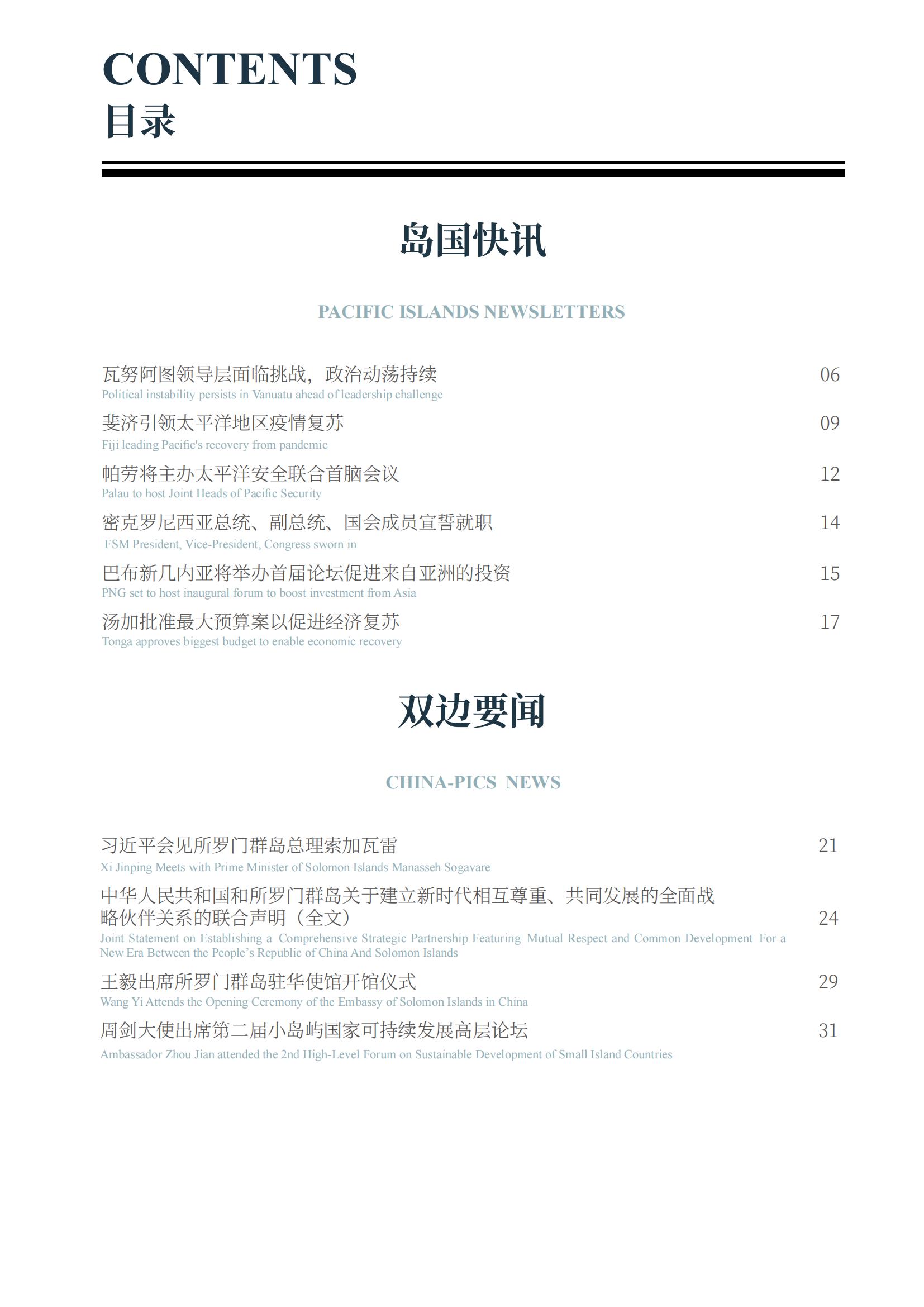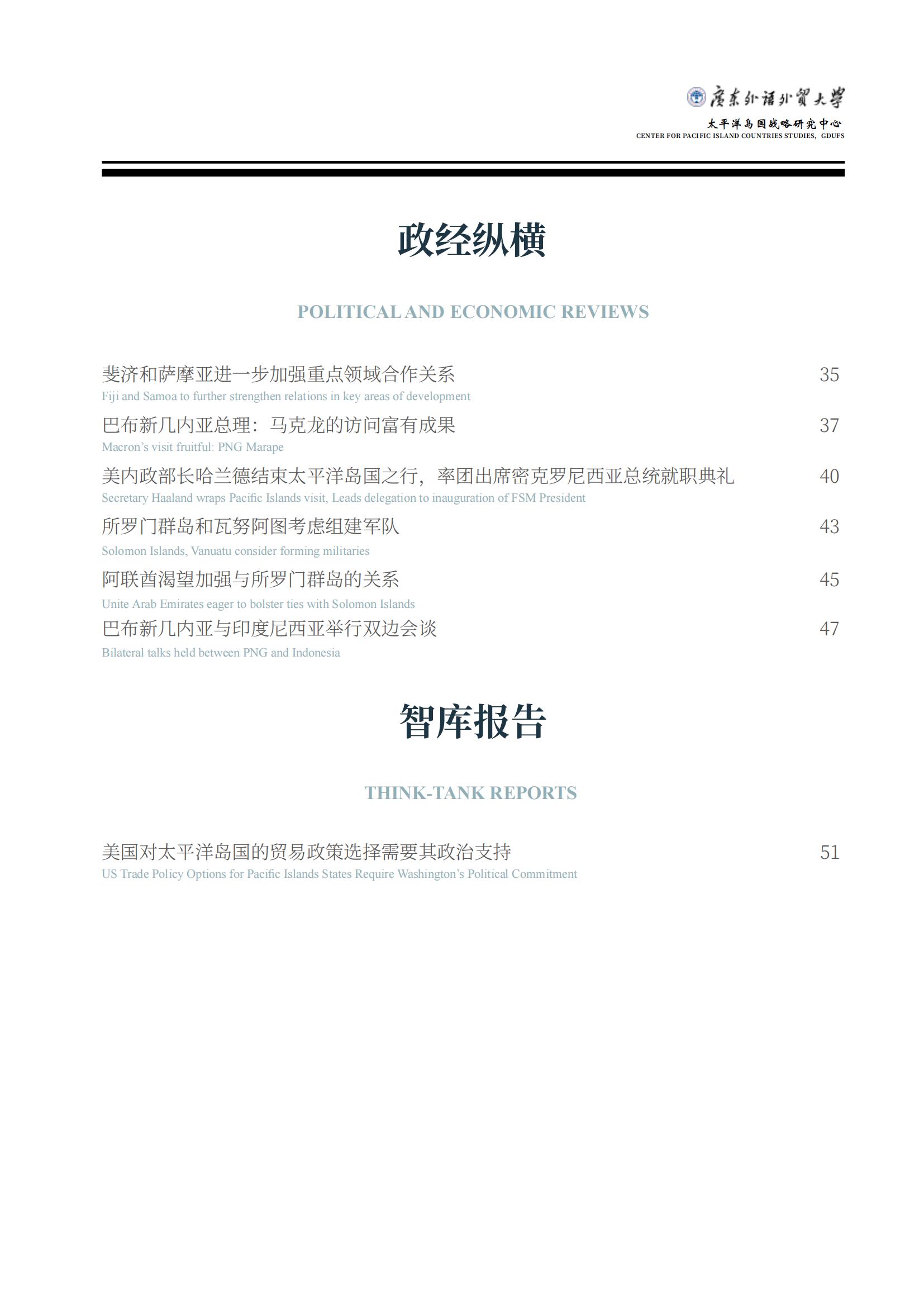 《伟德国际betvlctor1946》是由广东外语外贸大学太平洋岛国战略研究中心编译的学术通讯,旨在为国内外专家、学者,政府部门、研究机构提供太平洋岛国资讯,主要分为岛国快讯、双边要闻、政经纵横、智库报告四个板块。刊物将以双月刊形式进行线上发布。请您查阅2023年第22期内容。