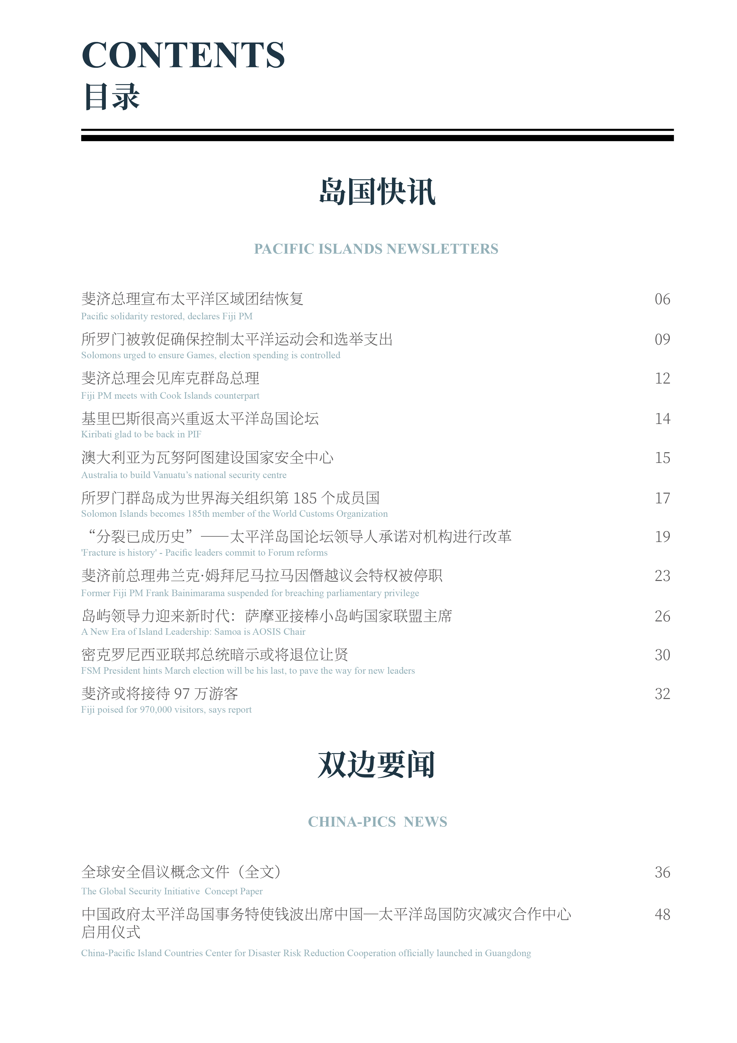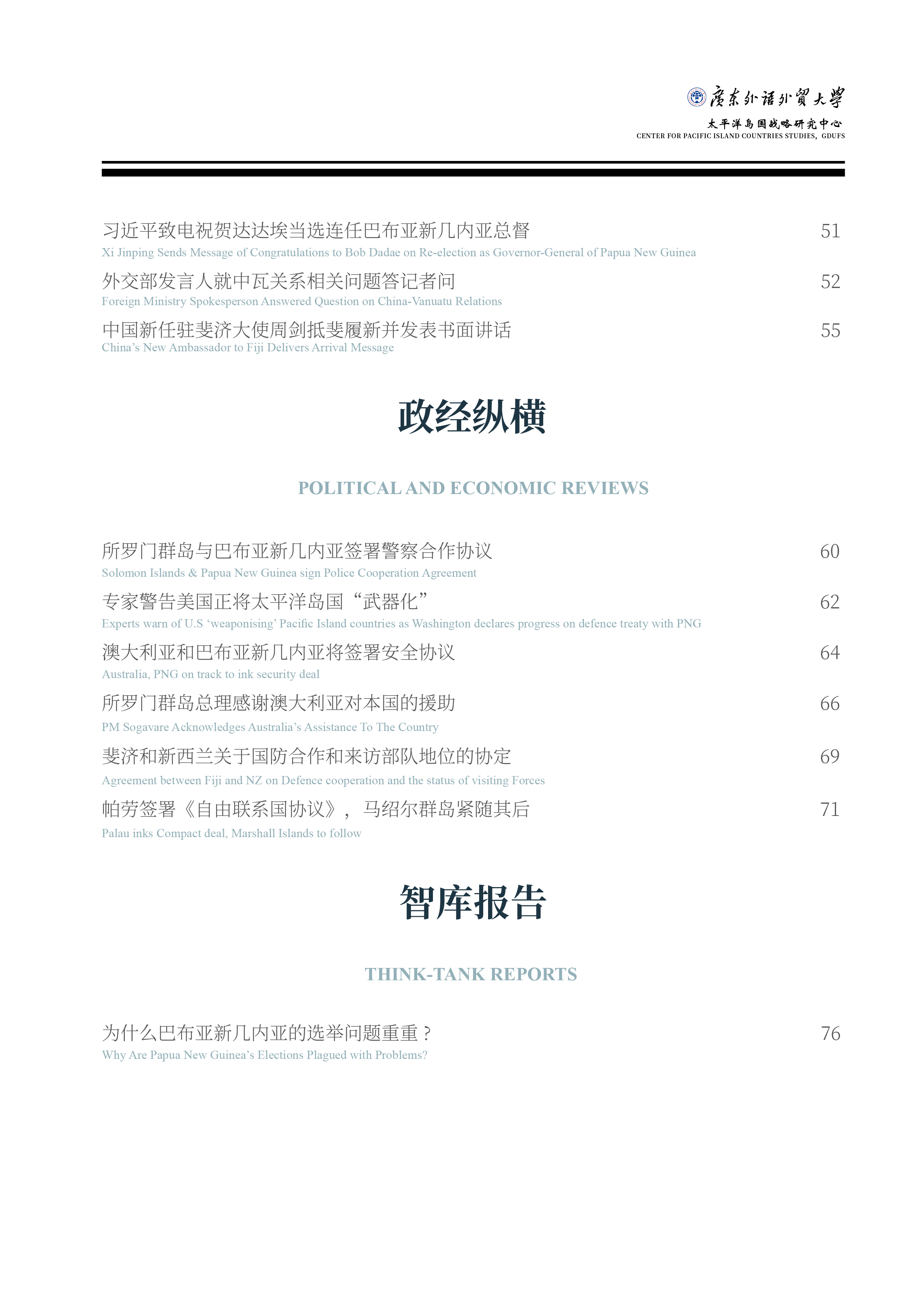 《伟德国际betvlctor1946》是由广东外语外贸大学太平洋岛国战略研究中心编译的学术通讯,旨在为国内外专家、学者,政府部门、研究机构提供太平洋岛国资讯,主要分为岛国快讯、双边要闻、政经纵横、智库报告四个板块。刊物将以双月刊形式进行线上发布。请您查阅2023年第19期内容。