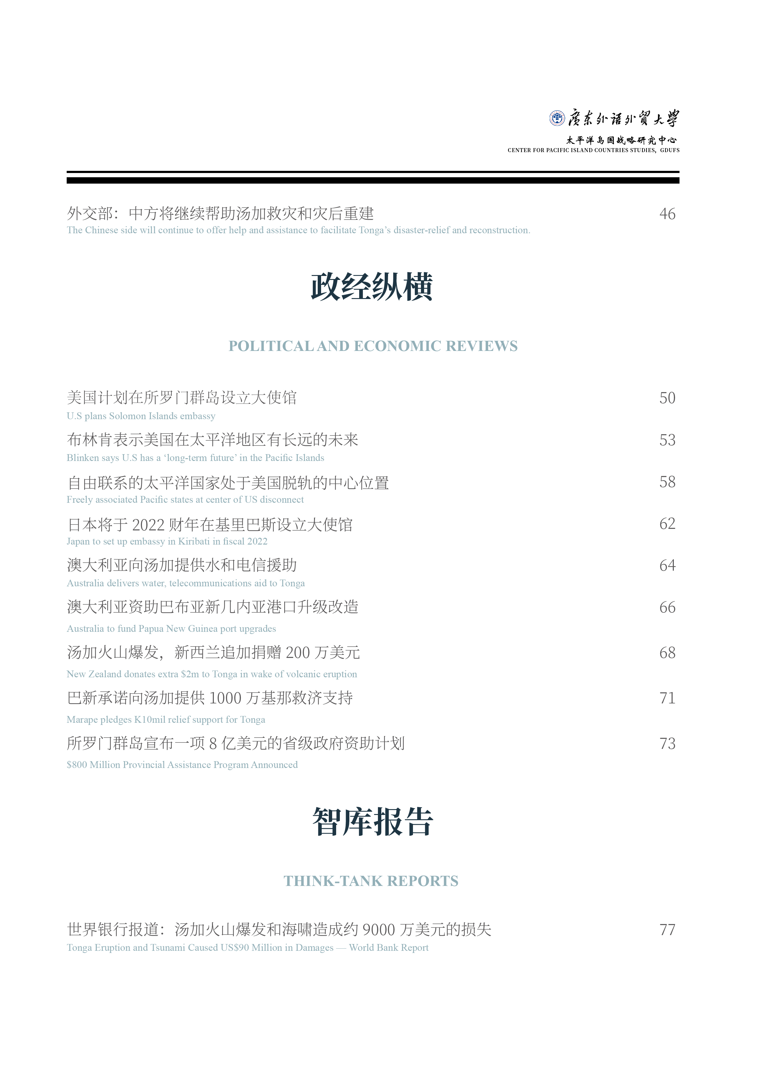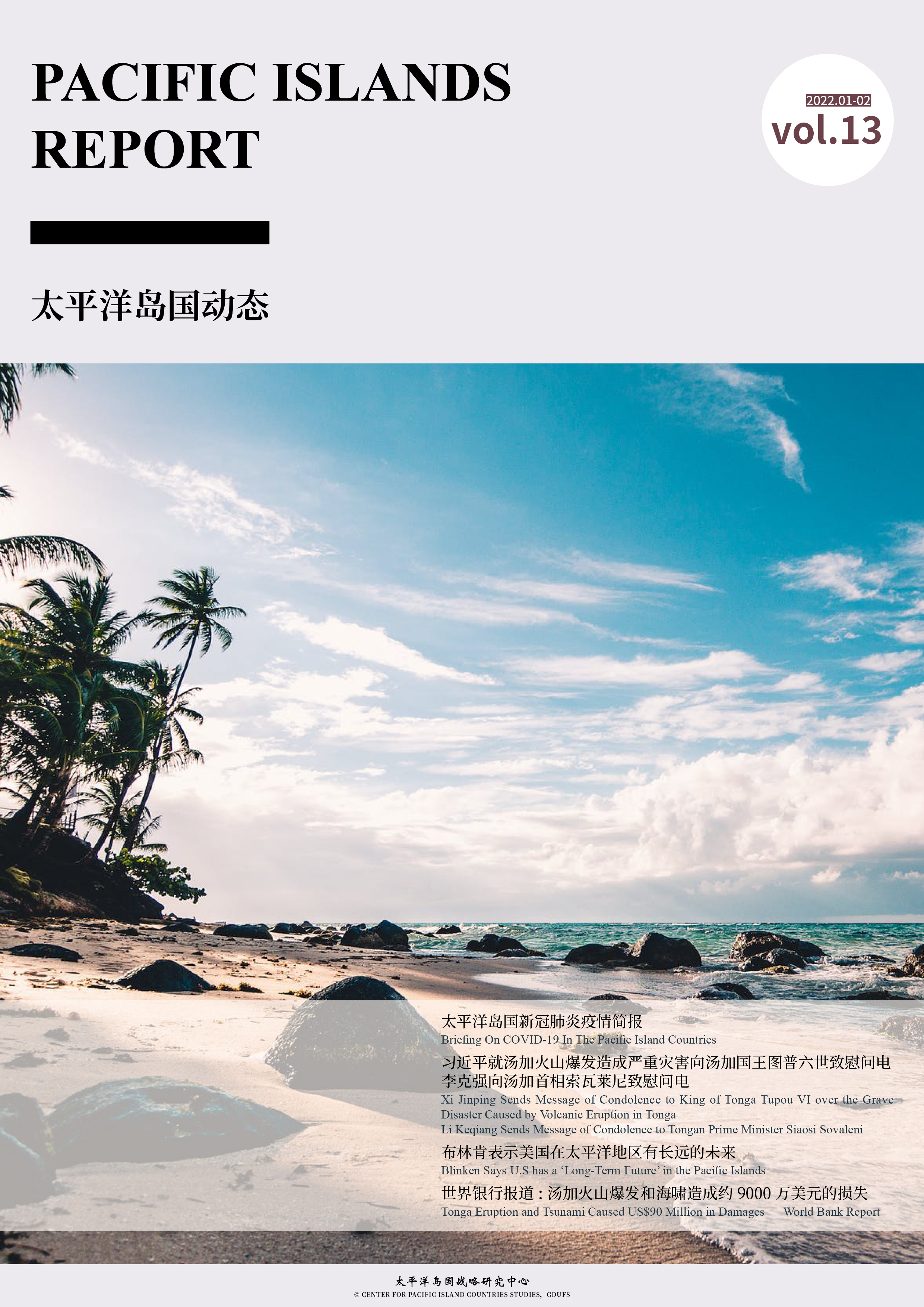《伟德国际betvlctor1946》是由广东外语外贸大学太平洋岛国战略研究中心编译的学术通讯,旨在为国内外专家、学者,政府部门、研究机构提供太平洋岛国资讯,主要分为岛国快讯、双边要闻、政经纵横、智库报告四个板块。刊物将以双月刊形式进行线上发布。请您查阅2022年第13期内容。
