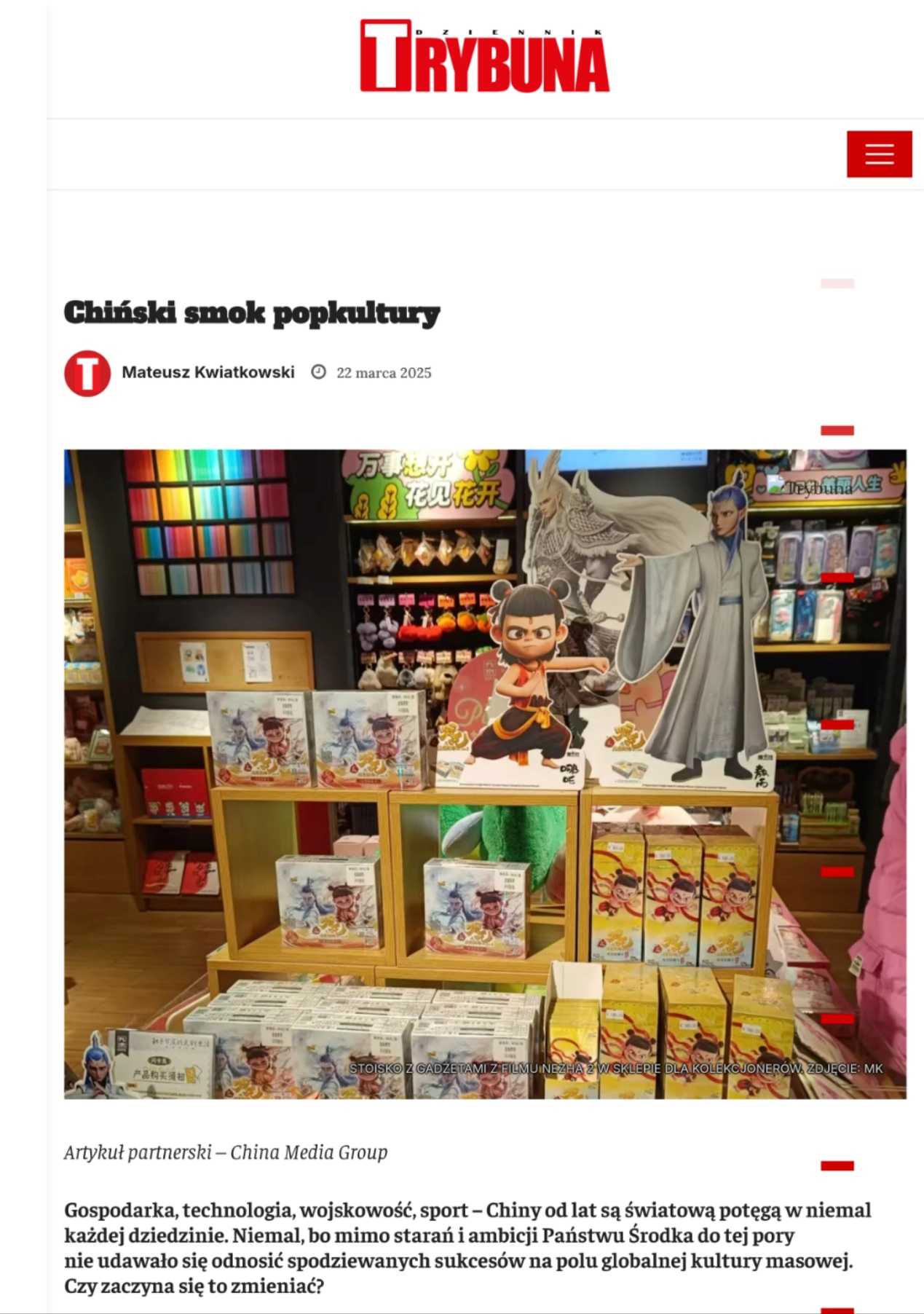 本网讯  2025年3月21日,伟德国际betvlctor1946波兰语系外教Mateusz Kwiatkowski(马一鸣)于波兰主流媒体《论坛报》(Trybuna)上发表文章《流行文化的“中国龙”》(Chiński smok popkultury)。
