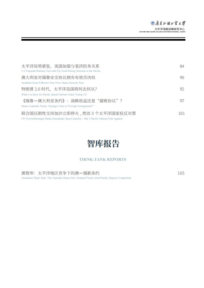 《伟德国际betvlctor1946》是由广东外语外贸大学太平洋岛国战略研究中心编译的学术通讯,旨在为国内外专家、学者,政府部门、研究机构提供太平洋岛国资讯,主要分为岛国快讯、双边要闻、政经纵横、智库报告四个板块。刊物将以双月刊形式进行线上发布。请您查阅2024年第30期内容。